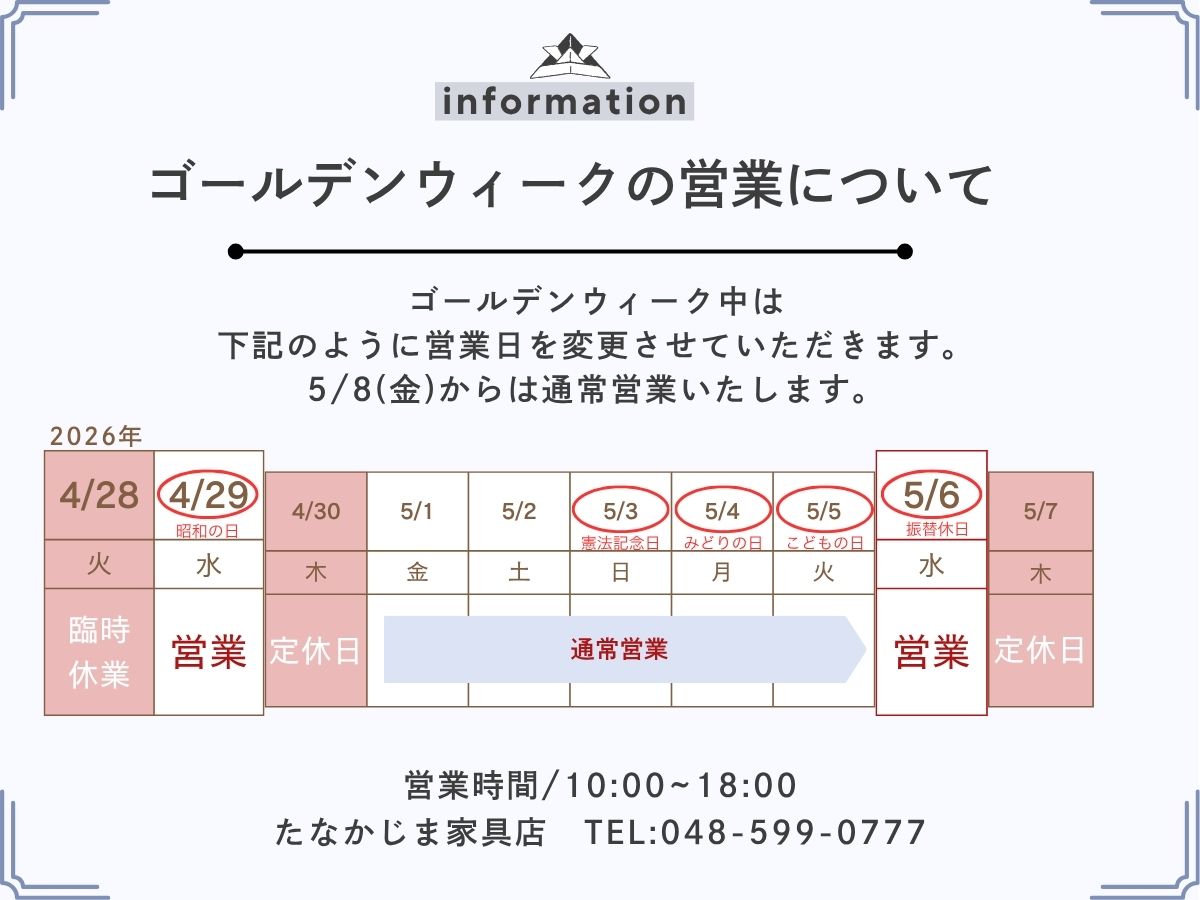 - 2026・ゴールデンウィークの営業のご案内ゴールデンウィーク中は営業日が変則となります。 4/29(水)・昭和の日、5/6(水)・振替休日は水… 続きを読む: 2026・ゴールデンウィークの営業のご案内