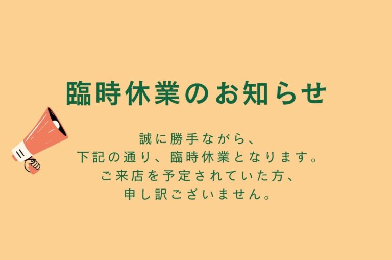 臨時休業のお知らせ / 2026・3/3(火)・4(水)・5(木)お休みをいただきます。