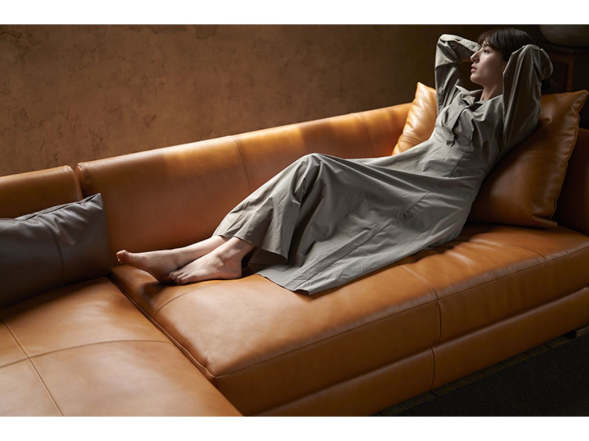 ◆ゆったり寝転ぶことができる広々したソファーで寝返りができるほどの奥行きです。寝転んだり、時には座ったりとソファの上で自由に体の向きを変えられる広さが魅力です。