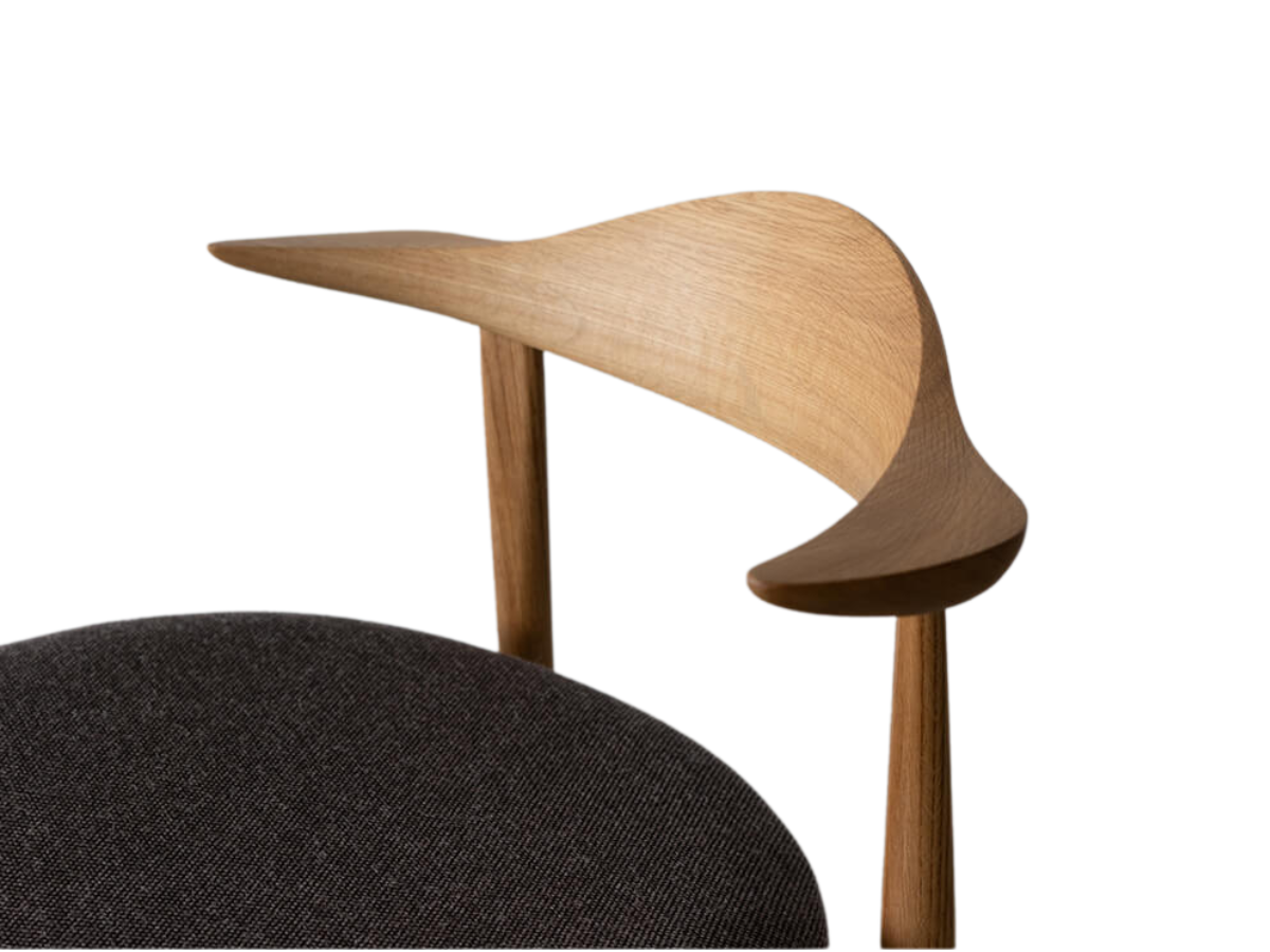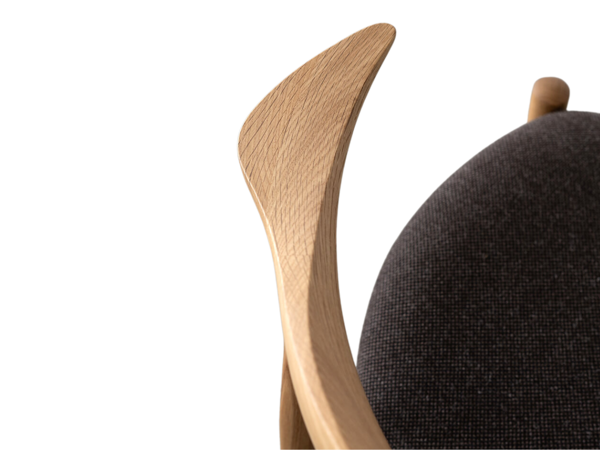 ツバメ(swallow)の羽を思わせる緩やかな弧を描くSwallowシリーズ。『スワローセミアームチェア』は、オークヴィレッジ創立50周年を記念して発表したチェアです。