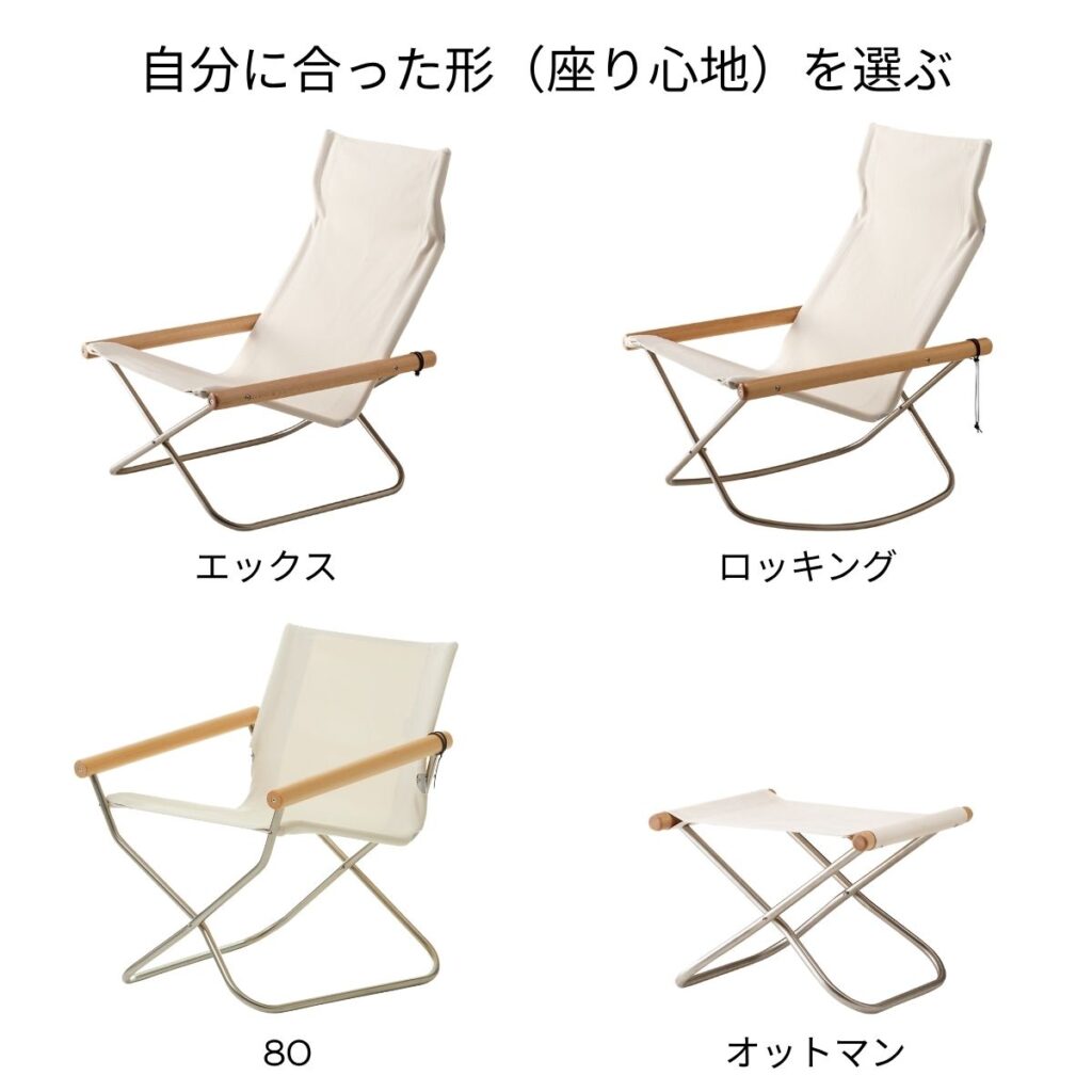 エックス、ロッキング、オットマン、80まで揃っているので、まずはここを基準に考えるとわかりやすいです。