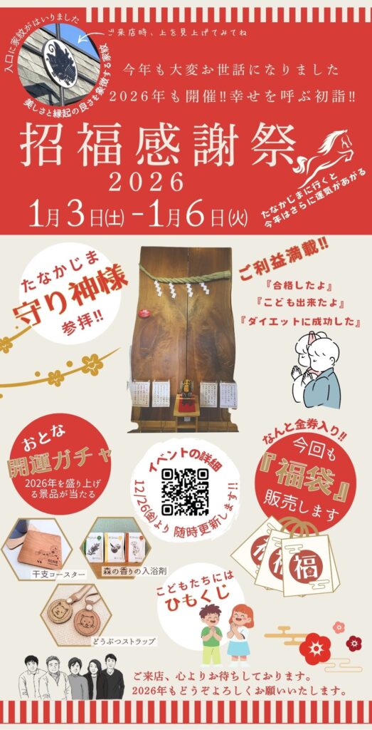 招福感謝祭とは、たなかじま家具店で福を招いて楽しく運気を上げるお祭りです。